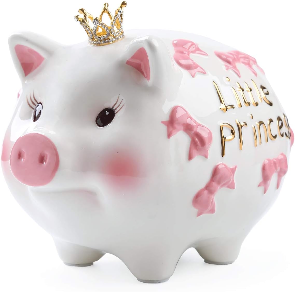 Amazon Com Forlong Fl2048 Ceramic Large Piggy Bank Coin Bank Crown Princess Money Box For Girl Pink L Toys Games
